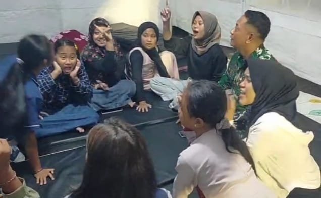 Lumajang — Di tengah situasi darurat pasca-erupsi Gunung Semeru, suasana pengungsian sering kali dipenuhi rasa cemas dan kelelahan. Namun pada Jumat malam (28/11/2025), keceriaan