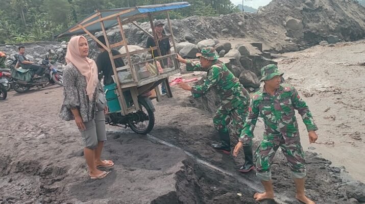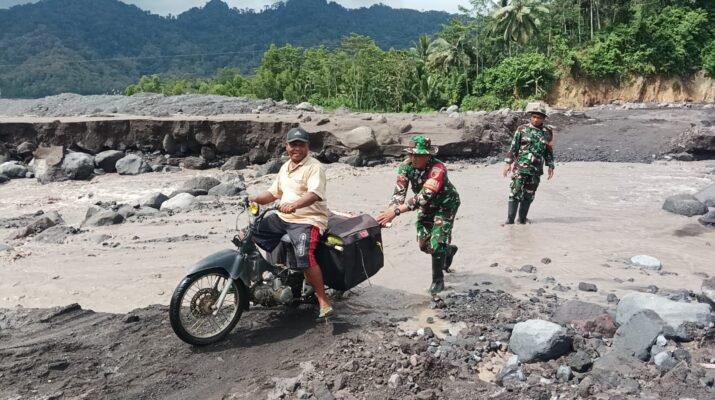 Lumajang – Di tengah cuaca yang tidak menentu dan aktivitas lahar dingin yang masih terjadi pasca-erupsi Gunung Semeru, Personel TNI kembali menunjukkan komitmen kemanusiaan mereka.