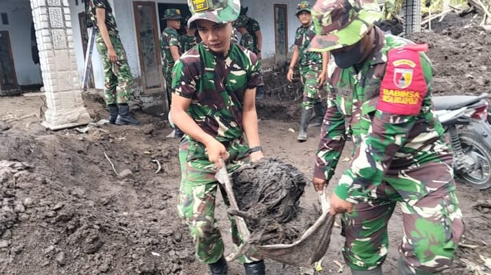 TNI Bergerak Cepat: Kodim 0821 Pacu Pembersihan Rumah Warga Terdampak Erupsi Semeru
