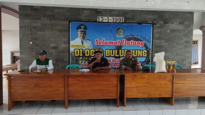 Babinsa Buluagung, Serda Hari Wahyudi, melakukan monitoring penyaluran bantuan pangan dari BULOG yang digelar di Balai Desa Buluagung, Kecamatan Siliragung, pada Kamis (04/12/2025). Kegiatan