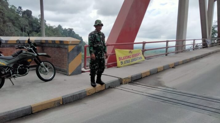 Personel Kodim 0821 Disiagakan di Jembatan Limpas Sumber Langsep untuk Pengamanan dan Bantu Aktivitas Warga.