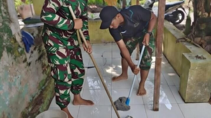 Satgas TNI Manunggal Membangun Desa (TMMD) Reguler Ke-127 Kodim 0819/Pasuruan kembali menunjukkan kepedulian terhadap fasilitas ibadah masyarakat. Prajurit Satgas melaksanakan pembersihan dan finishing kamar mandi (MCK) di Mushola milik Ibu Yuyun, Desa Wonosari, Kecamatan Gondangwetan, Kabupaten Pasuruan, Senin (9/3/2026).