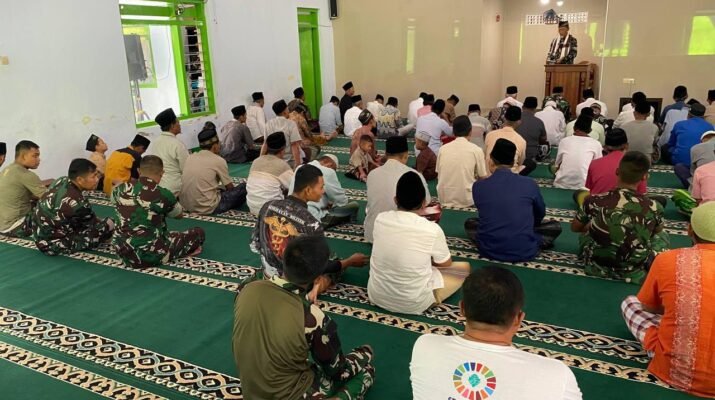 Pabintal Korem 083/Bdj Letda Inf Jaenuri memberikan khutbah Sholat Jumat di Masjid Al-Amin, Desa Lebakharjo, Kecamatan Ampelgading, Kabupaten Malang, Dalam rangka mendukung program TMMD