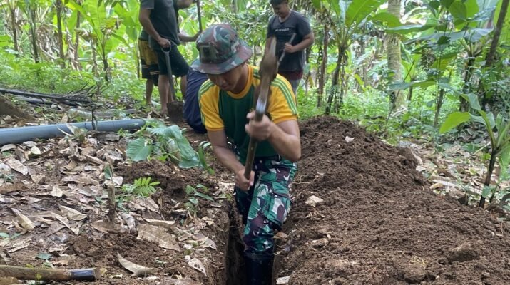 Pagi itu, deru suara alat dan semangat gotong royong terdengar jelas di lereng pegunungan. Sejumlah prajurit bersama warga memanggul pipa, menggali tanah, dan merangkai saluran air. Pekerjaan ini bukan sekadar pembangunan infrastruktur, tetapi juga bentuk nyata kebersamaan antara TNI dan rakyat.