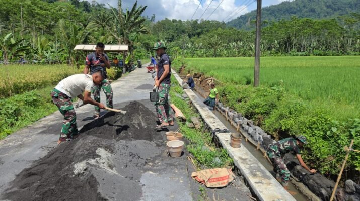 Semangat gotong royong kembali ditunjukkan oleh anggota Satgas TNI Manunggal Membangun Desa (TMMD) Ke-126 Kodim 0818/Malang-Batu. Personel yang tergabung dari Satuan Yonarmed 8 Uddhata Yudha terus melanjutkan pembangunan saluran irigasi di Dusun Kerajan II, Desa Lebakharjo, Kecamatan Ampelgading, Kabupaten Malang,