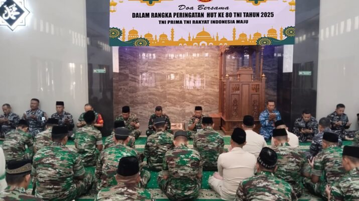 Banyuwangi – Dalam rangka memperingati Dirgahayu Tentara Nasional Indonesia (TNI) ke-80, anggota Kodim 0825/Banyuwangi melaksanakan doa bersama di Masjid A. Yani, Makodim 0825/Banyuwangi, pada