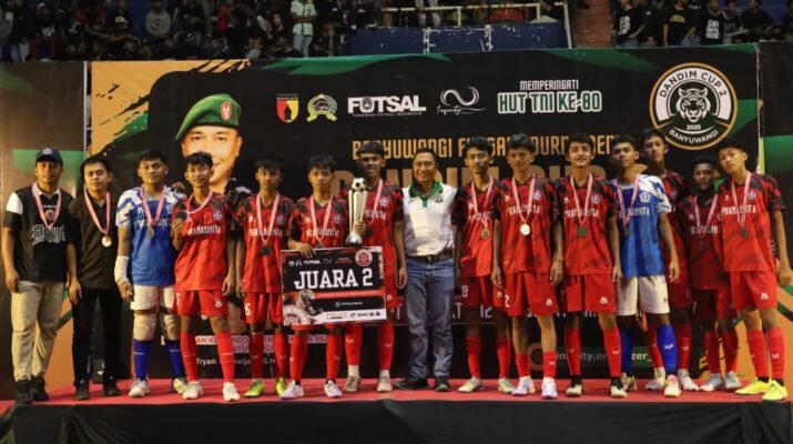 BANYUWANGI – Ribuan pasang mata tertuju ke lapangan GOR Tawang Alun, Sabtu sore (4/10/2025). Sorak penonton menggetarkan tribun saat Banyuwangi Futsal Turnament Dandim Cup