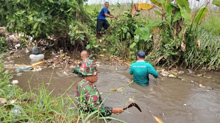 Di tengah genangan air keruh yang dipenuhi sampah dan lumpur, prajurit Satgas TNI Manunggal Membangun Desa (TMMD) Reguler Ke-127 Kodim 0819/Pasuruan turun langsung ke sungai. Dengan seragam loreng dan alat sederhana seperti galah bambu, mereka bergotong royong bersama warga membersihkan sungai di Desa Wonosari, Kecamatan Gondangwetan, Kabupaten Pasuruan, Senin (9/3/2026).